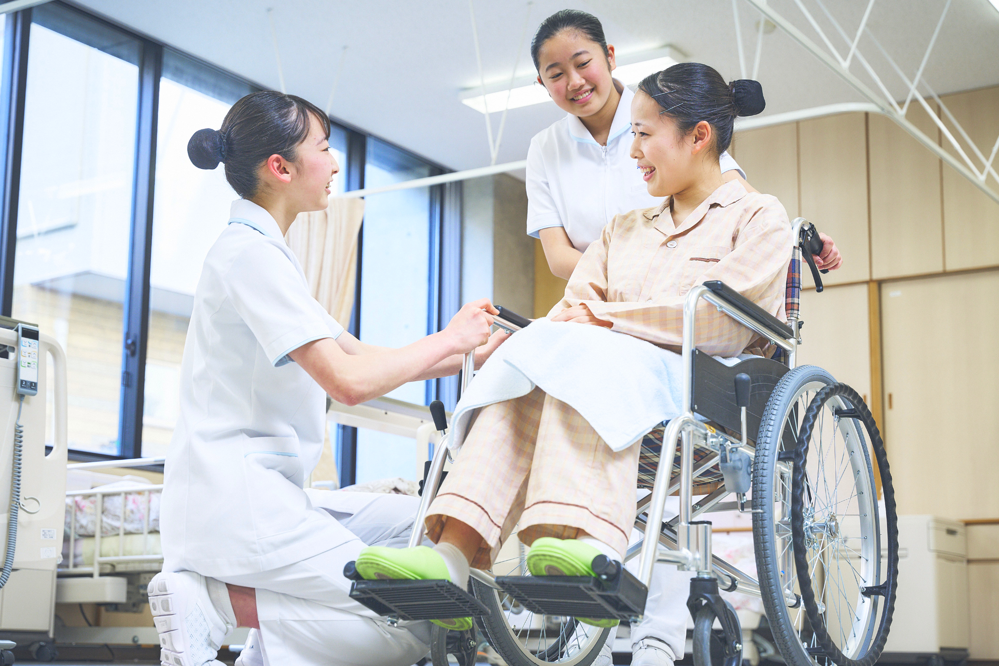 本校看護科は、高校3年間と専攻科2年間の5年一貫教育により、最短の20歳で看護師国家試験受験資格の取得を目指すことができます。専攻科への進学に入試がなく、継続して学べる環境の中で、基礎から専門、臨地実習まで段階的に学習します。知識や技術だけでなく、命と向き合う医療人としての倫理観や責任感を育てる教育を行っています。